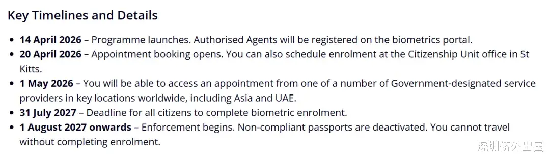 主要时间线2026年4月14日——项目启动。授权代理将在生物识别门户上注册。