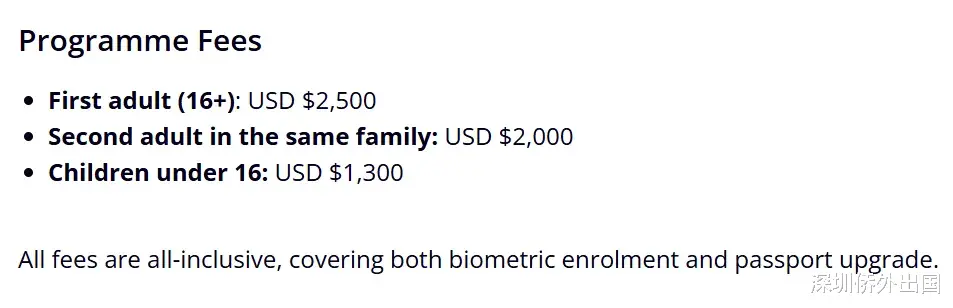 所有费用均为全包价,涵盖了生物信息登记和护照升级。