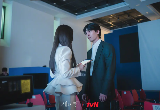 从最初对韩雪雅的怀疑与警惕,到调查中被她的魅力吸引,再到在职业使命与心动之间的反复挣扎,他的眼神从冰冷锐利逐渐变得温柔纠结,与朴敏英的每一次眼神交汇都张力拉满,两人之间猫鼠游戏般的爱恋,让观众隔着屏幕都能感受到那份危险又窒息的暧昧。