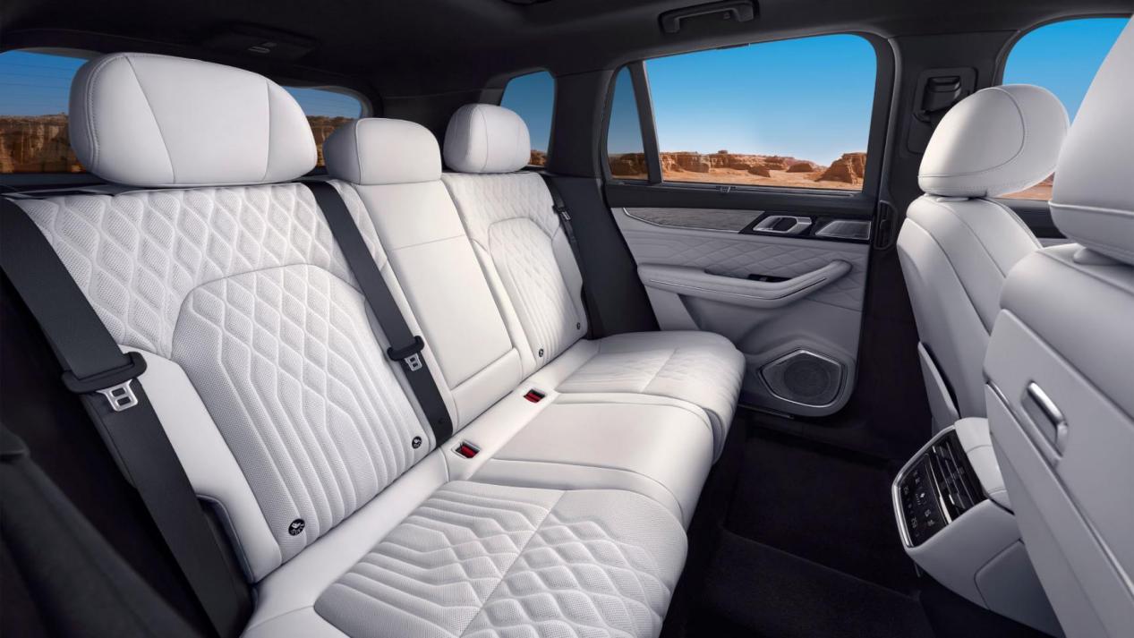 车内防护同样以基础安全为核心,致力于实现“每一位都是安全C位”。其搭载同级唯一的前后热成型钢纵梁结构,确保前后纵梁强度一致,避免因结构设计不均留下安全隐患;后排座椅背部采用防穿刺高强度钢板,通过物理防护有效保护后排乘员;2550mm超长保压侧气帘展开后可覆盖A柱至D柱,为前后排乘客提供全面的侧方防护;副驾配备的国内首创特制狐首型安全气囊,在偏置碰撞时通过独特的结构设计,对头部的承托保护更全面,降低高伤害风险。