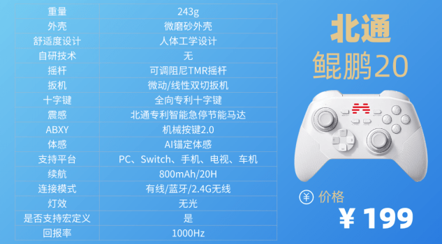 十字键换成新版本的转轴结构,方向触发更准;震动支持多级,还能根据游戏智能变化。三模连接(2.4G/蓝牙/有线)在不同设备之间切起来挺快,PC、Switch、手机等这些平台都能直接用。续航方面,单次可以使用20小时,对于日常使用来说是完全足够的。