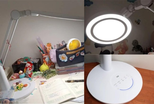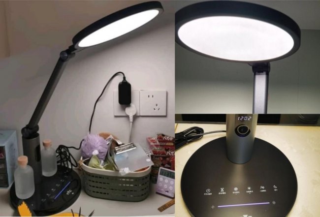 ✅ 面光+环光组合发光:20.5cm圆形发光面结合双层出光结构,桌面中心与边缘亮度过渡自然,满足国AA级照明要求。