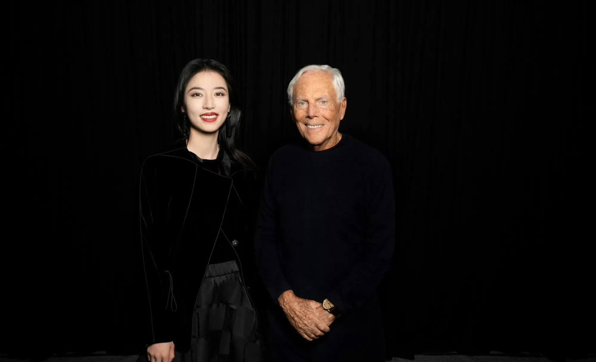 而周雨彤就是这样成熟知性,虽说只有20多岁,却有着不一样的成熟稳重,也和她的童年有关系吧。周雨彤和阿玛尼先生的合照,很自然又很自信,这就是生活中的周雨彤吧。