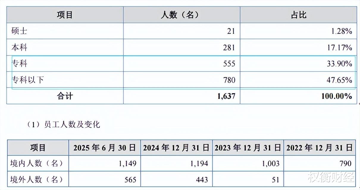 截至2024年末,新富科技员工学历专科及专科以下占比超8成。本科以上的仅有302人,占比为18.45%,其中研发人员为118人,占比仅6.88%,不足高新企业所要求的研发技术人员占比10%的标准。