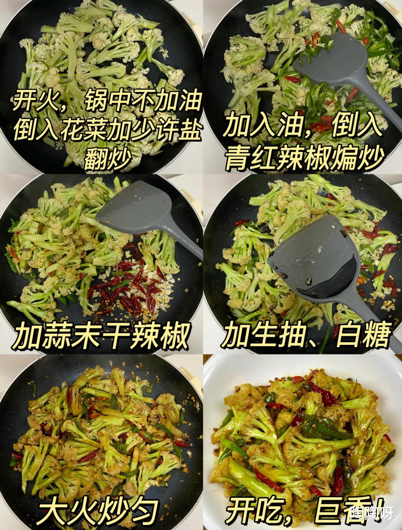 - 全程大火快炒:这样才能炒出“锅气”,让花菜有焦香的口感。