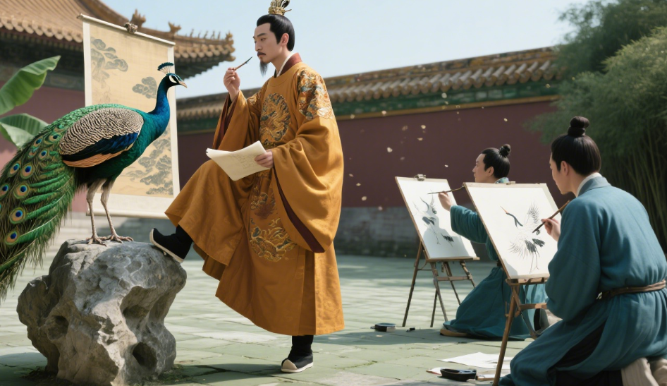 画院并非避世桃源。宋徽宗苛求格物精微,曾命画师观察“孔雀登墩先抬哪只脚”,其《瑞鹤图》片瓦皆经得起细看。
