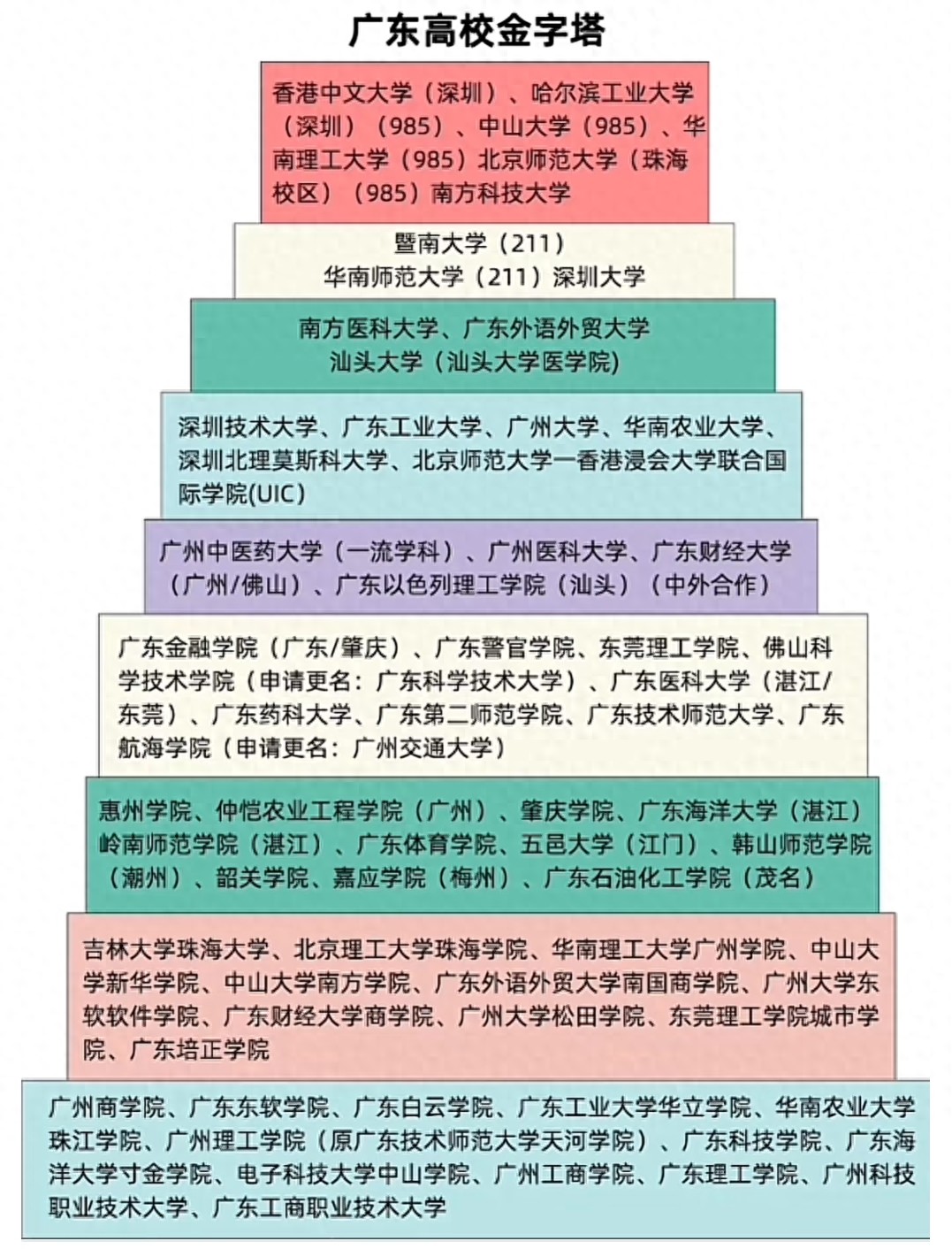 打开广东的高校名单,就像推开了一扇分层的玻璃门——有人站在塔顶享尽资源,有人在塔腰努力突围,也有人在塔基里默默寻找属于自己的光。这份“高校金字塔”,藏着无数家庭的升学期待,也写满了不同院校的生存与成长。