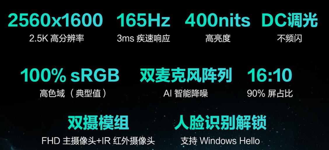 ●2.25kg轻薄机甲风机身,搭载2.5K 165Hz屏,接口丰富