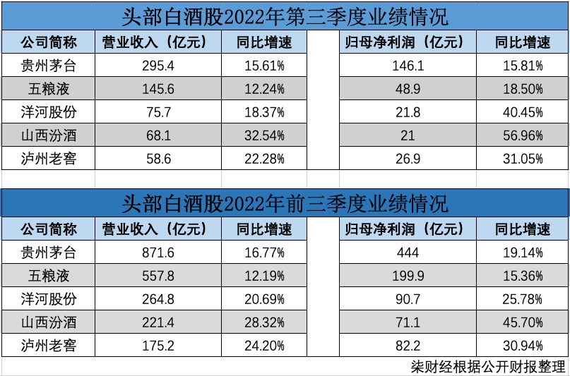 A股上市公司“季度考”又来了!其中,随着各大白酒上市企业公布2022年第三季度报告,今年以来的累计业绩情况得以曝光。