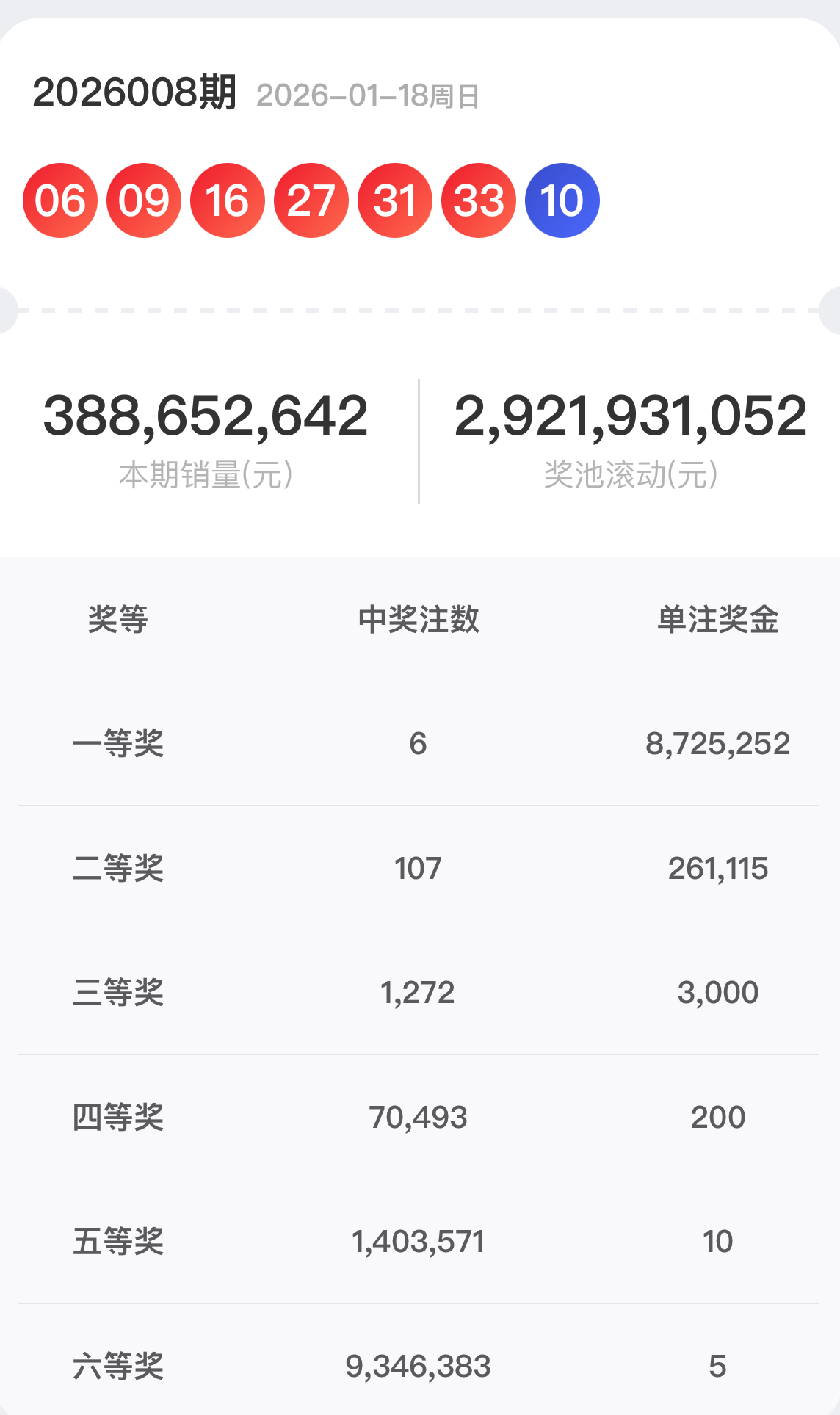 福彩双色球游戏②⓪②⑥008期开奖结果