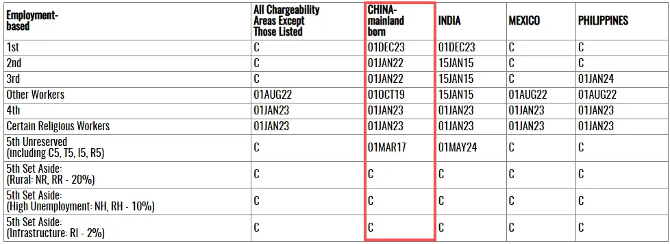 EB-5(旧政直投及区域中心):大幅前进5个月,来到2017年3月1日。