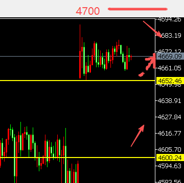 3、黄金若下方回调,跌破了4652的位置,继续看大的回调,那么继续看向4600的支撑。