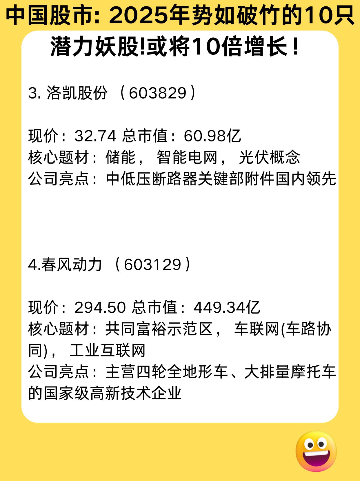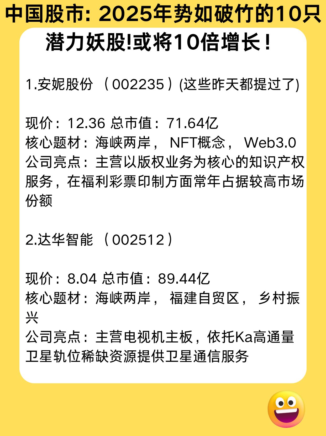 中国股市: 2025年势如破竹的10只潜力妖股! 或将10倍增长!