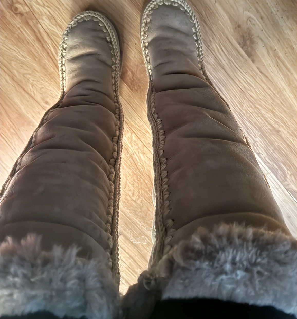当你踩在鞋子上或者天气下雪,雪地靴的周围都慢慢浸湿了。