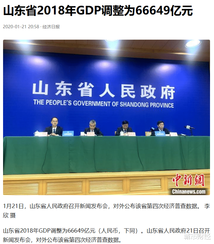 2020年年初,山东省召开新闻发布会,公布了第四次经济普查数据,将2018年的GDP调整为66649亿元,