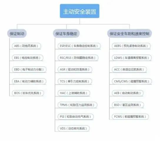 主动安全系统主要是在事故没有发生之前,车辆上能起到预防事故发生的装置。比如ABS、EBD、SEP等等。
