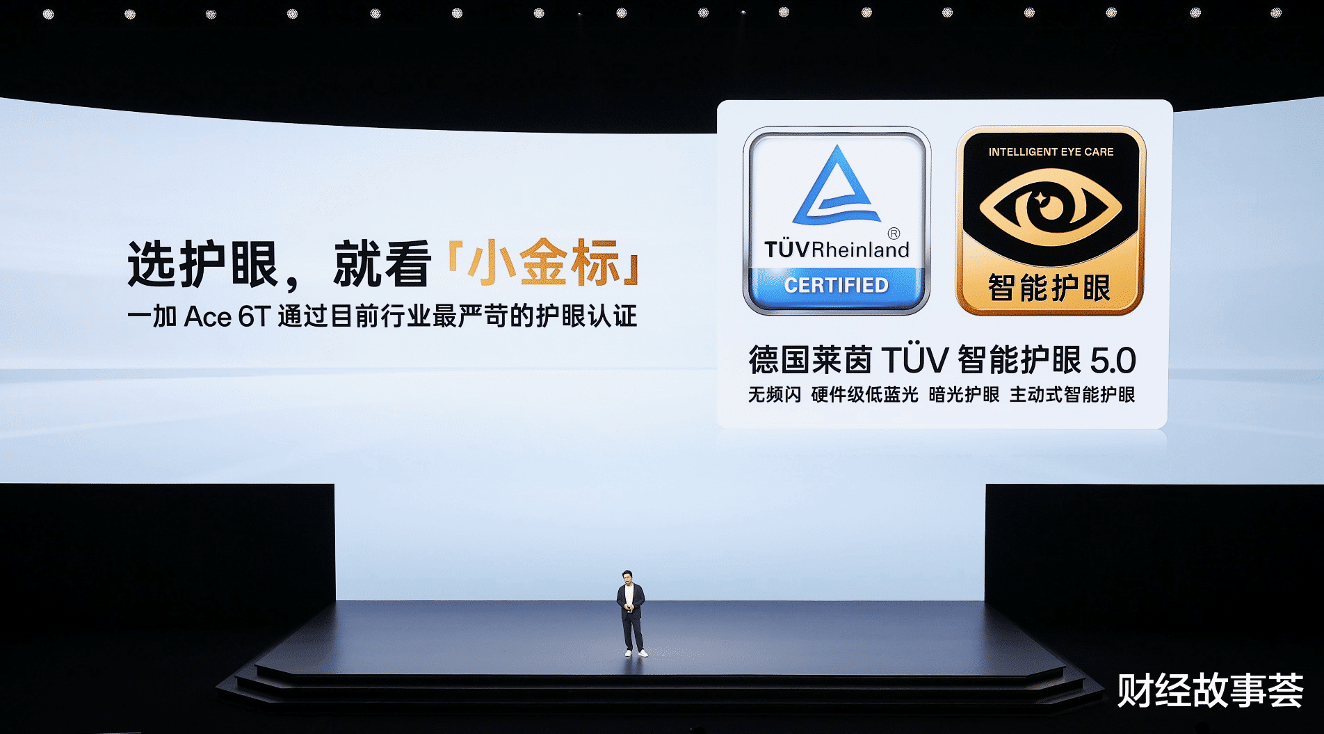 一加 Ace 6T搭载同档唯一165Hz超高刷电竞屏,带来极致高刷流畅体验,护眼能力同样出众。一加 Ace 6T 携手浙江大学、视觉健康全国重点实验室,带来了全新一代医显共研的全新「明眸护眼」,通过硬件级低蓝光、类1nit超低亮显示、3840Hz 超高频PWM 调光,有效缓解因蓝光辐射、屏幕晃眼、频闪伤眼导致的视觉疲劳,同步搭配AI距离提示、AI眨眼提示、晕动舒缓显示等主动式护眼功能,并通过了行业最严苛的德国莱茵TÜV「小金标」护眼 5.0认证。一加 Ace 6T还搭载了旗舰同款超声波指纹识别技术,指纹识别精准、快捷,全方位打造旗舰级屏幕水准。