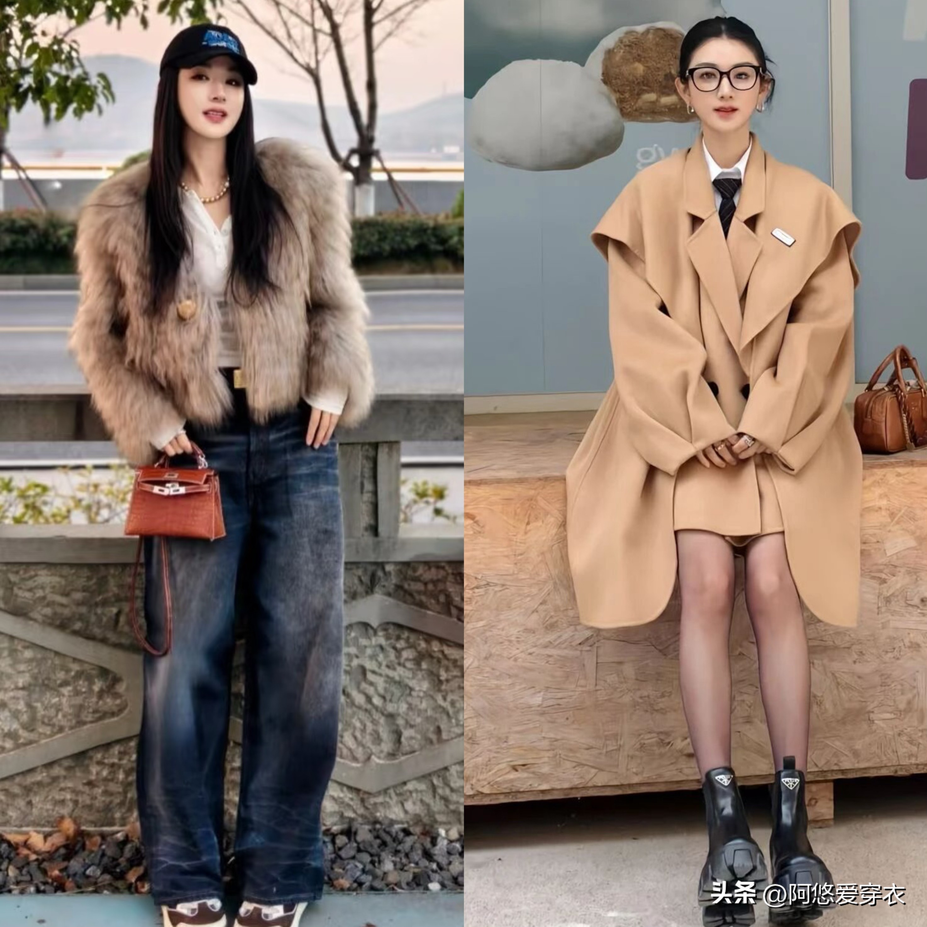 但选择毛绒外套的时候,尽量避开暴发户感很重的花哨款,可以选经典的深色系,显瘦还百搭,也可以选浅色短款,穿着轻盈不臃肿。