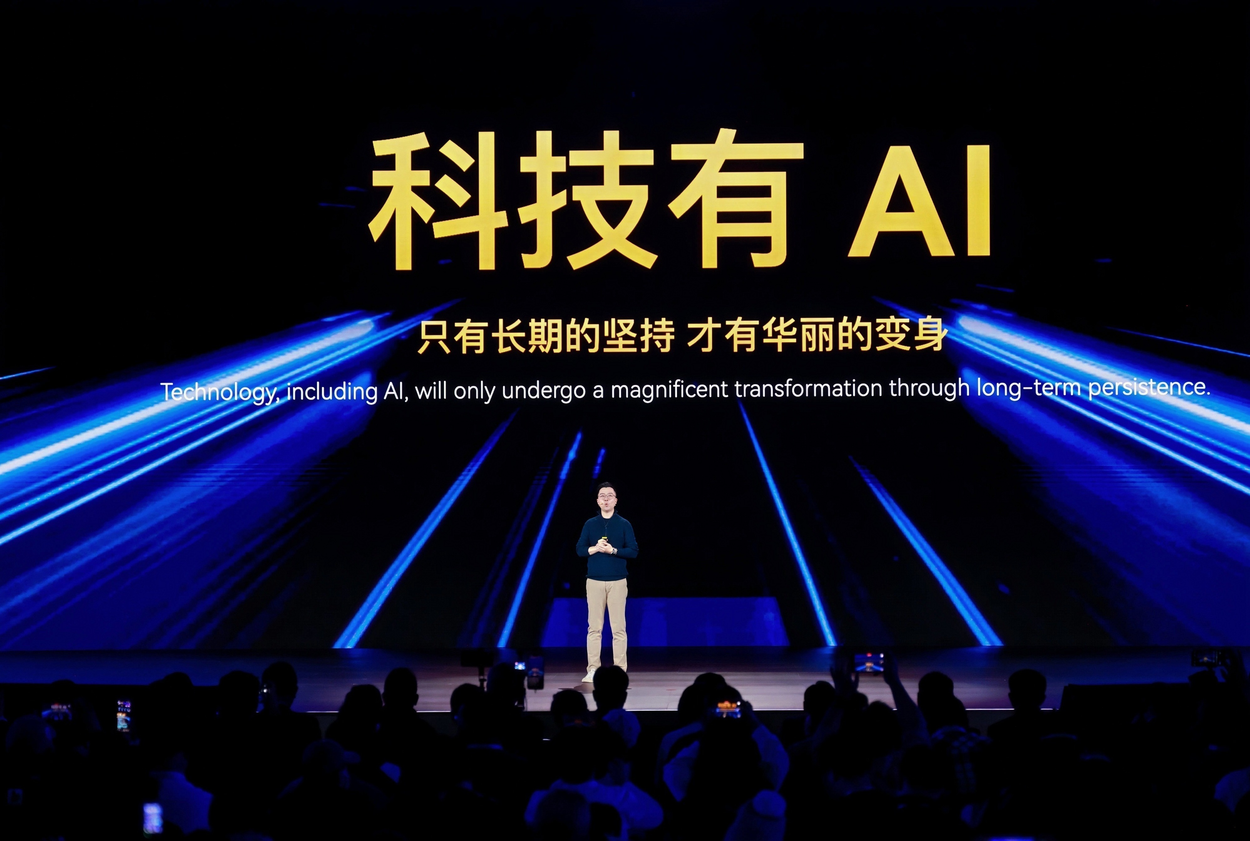 奇瑞集团董事长尹同跃登台时,背景大屏上跳动的神经网络可视化图像构成了奇瑞的LOGO形态。“我们不再仅仅是造车企业,”他的开场白简洁而有力,“奇瑞正在成为一家以人工智能为核心的科技公司。并且重申:2026年奇瑞的AI也要不客气了!”