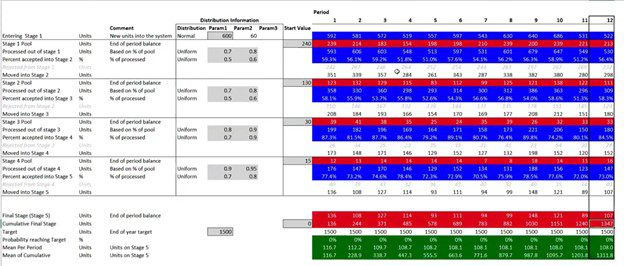 销售团队和招聘人员可以使用@RISK对流程管道进行建模,以预测年终结果。该软件有助于估算在每个阶段达成目标的概率,而Goal Seek功能可以确定为达到目标所需的潜在客户或候选人的数量。
