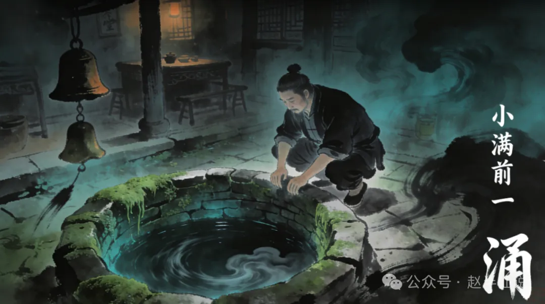 茶馆后院那口老井,水面莫名涨了三寸,井水清得发暗,井壁的青苔绿得发腻,像浸了油的湿绸。手一摸,滑腻中带着点黏滞,竟像摸着活物的脊背,指尖还能感觉到细碎的颤栗。我蹲在井边看了半晌,水面映着的天是浑的,云走得飞快,可井水却纹丝不动——是地气往上顶,把井水硬生生托了起来,滞住了流转的气。
