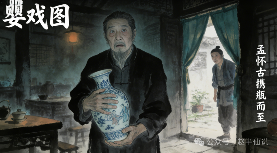 他笑了,是这半天来第一次笑,笑得很轻,却很踏实。他抱起桌上的青花瓶,这次抱得不再紧绷,而是多了点小心翼翼的温柔。他走得很慢,一步一步,踩得很稳,再也没有来时的滞重和惶恐。