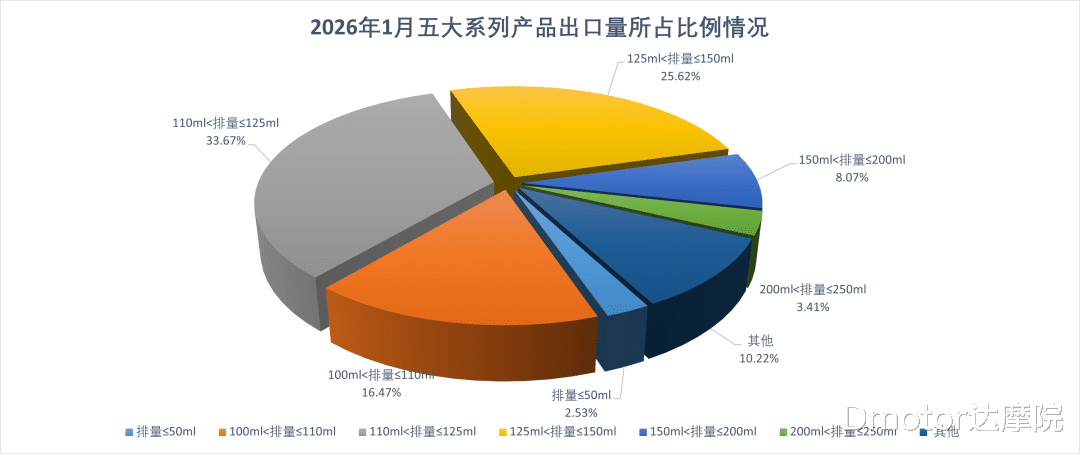 2026年1月燃油摩托车出口情况本文不过多的数据体现和对比,毕竟数据都是冰冷的数字,目的是反映出发展趋势。本期,达摩院只是与大家简单聊聊“内销冷”“出口热”所传达出来的信息,顺带也聊聊2026年1月150cc踏板上牌排名前5的车型。