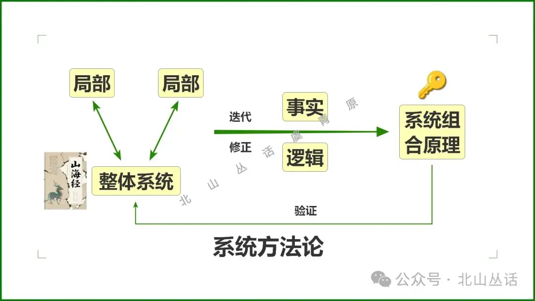 系统方法论,就是立足于整体,着眼于局部,基于事实和逻辑,推测系统组合原理,然后再予以验证,反复迭代,不断修正。山海经有系统条理性,适合用系统方法论来研究。