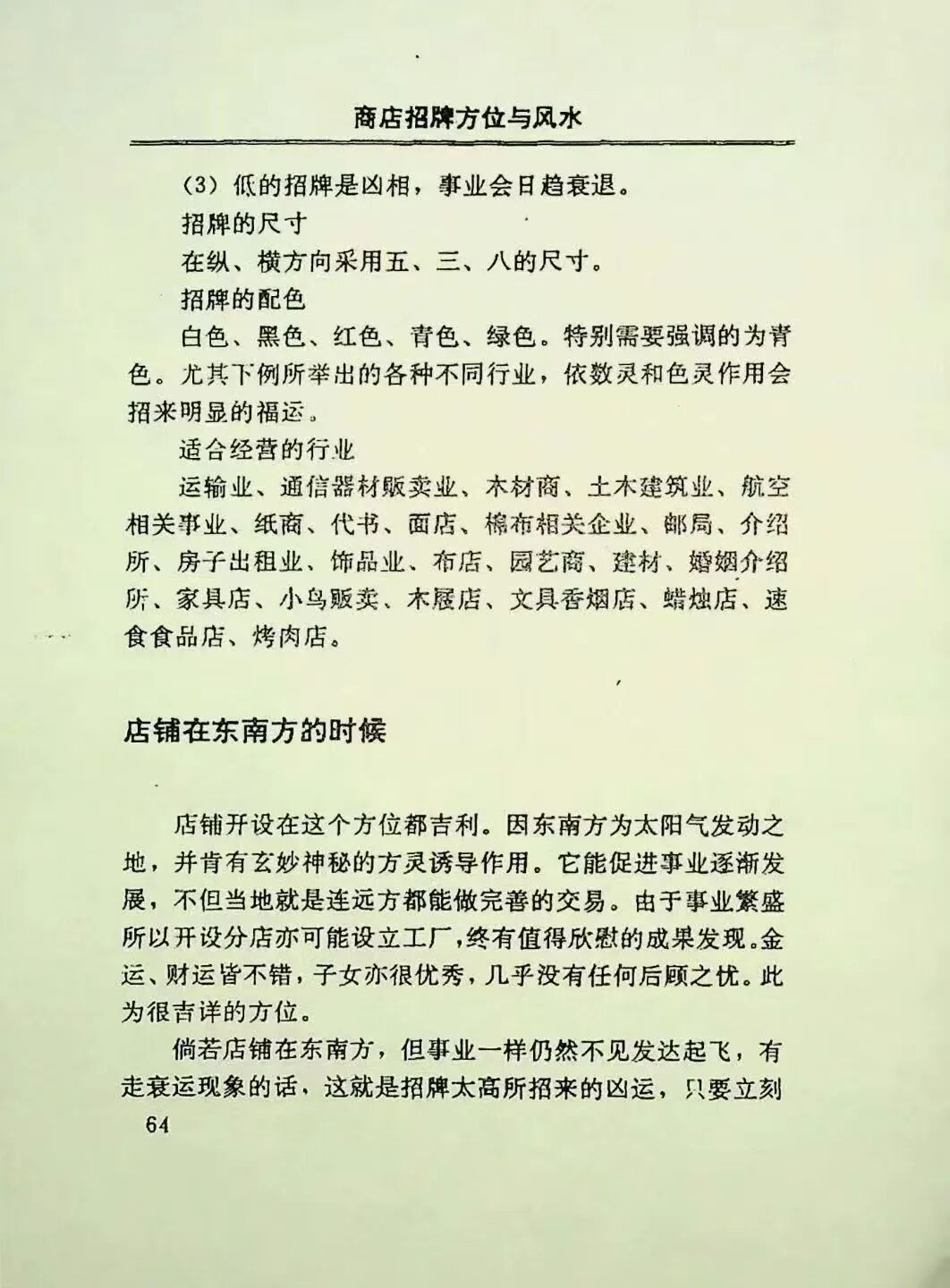 全书两册187页,干货满满、内容规整,以“商铺招牌风水实操真传为核心、落地应用为载体”,构建起“风水认知—方位布局—配色技巧—避煞纳吉—实战适配”的完整体系,每一个布局方法、每一句风水口诀、每一个实操细节均源自正统传承,贴合商铺风水“聚气招财、旺业避煞”的核心逻辑,真正实现“看得懂、学得会、用得上、值得藏”。书中亮点纷呈,全品类覆盖无死角:系统呈现商铺风水核心基础,详解阴阳五行生克、九宫飞星规律,夯实招牌布局根基,契合“方位合气场、五行生财气”的风水准则;深入解析四大朝向(坐东朝西、坐西朝东、坐北朝南、坐南朝北)的招牌布局技巧,结合行业五行适配配色,比如餐饮业属火宜用红橙,金融业属金宜用白金,实现五行相生、催旺商运;完整解读招牌尺寸、材质选择、挂牌择吉要点,详解煞气规避方法,比如化解直路冲煞、压顶煞,避免招牌残缺、上下相克等禁忌,补充实战案例,完善商铺招牌风水体系,传承商铺风水文化精髓。