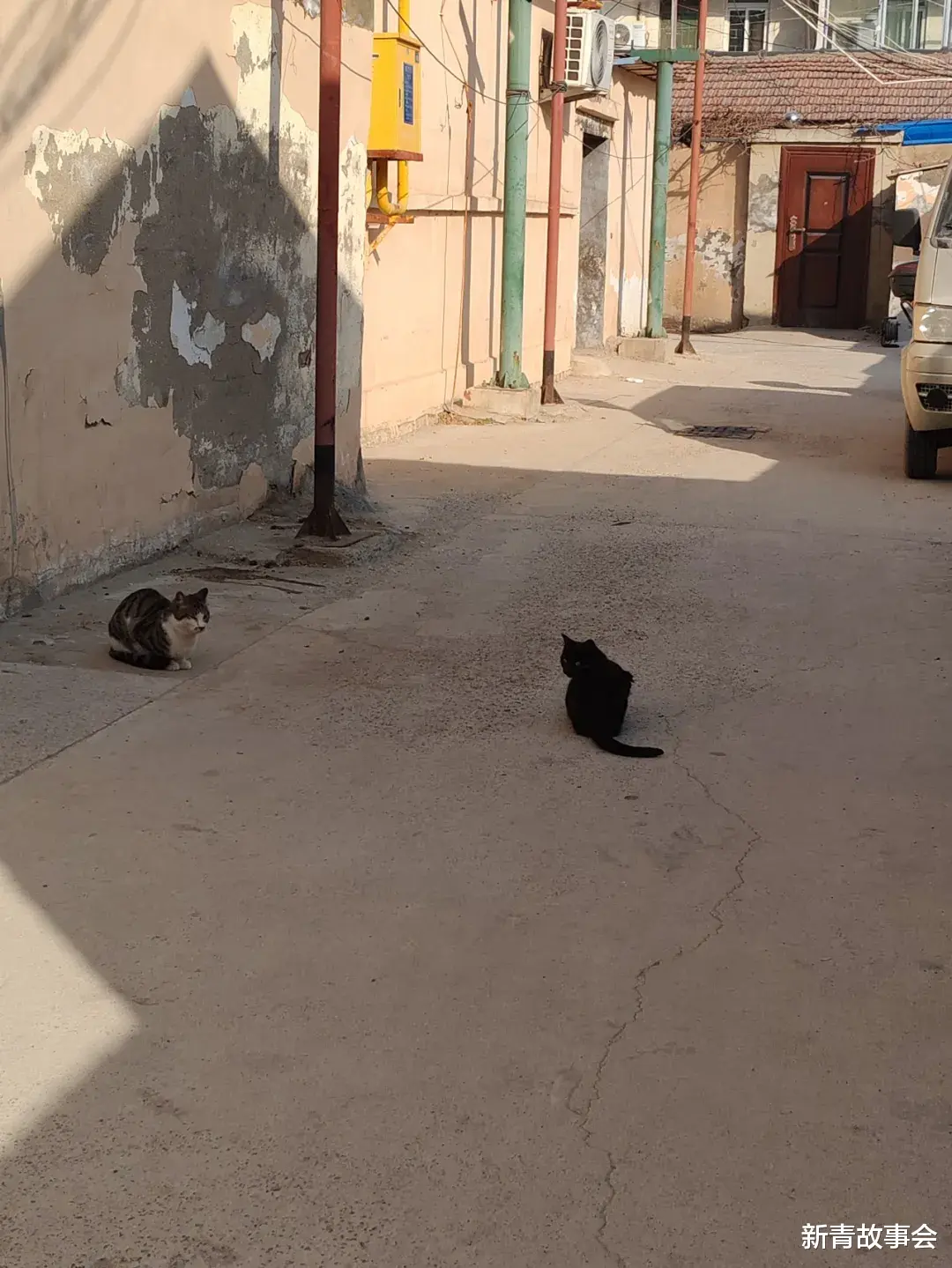▼两只小猫相互盯着,不时发出喵喵的叫声,不知是在斗法还是在谈情说爱
