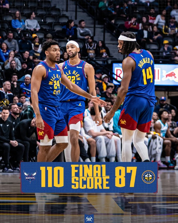 昨天逆转战胜奇才之后,掘金今天又背靠背在主场以87-110惨败给黄蜂,4连胜被终结,战绩变成29胜14负,继续排在西部第三。虽然今天遭遇了一场惨败,但在约基奇受伤之后,掘金的战绩还是达到了7胜4负,而约基奇本赛季出战时为22胜10负。黄蜂战绩来到16胜27负,继续排在东部第十二。