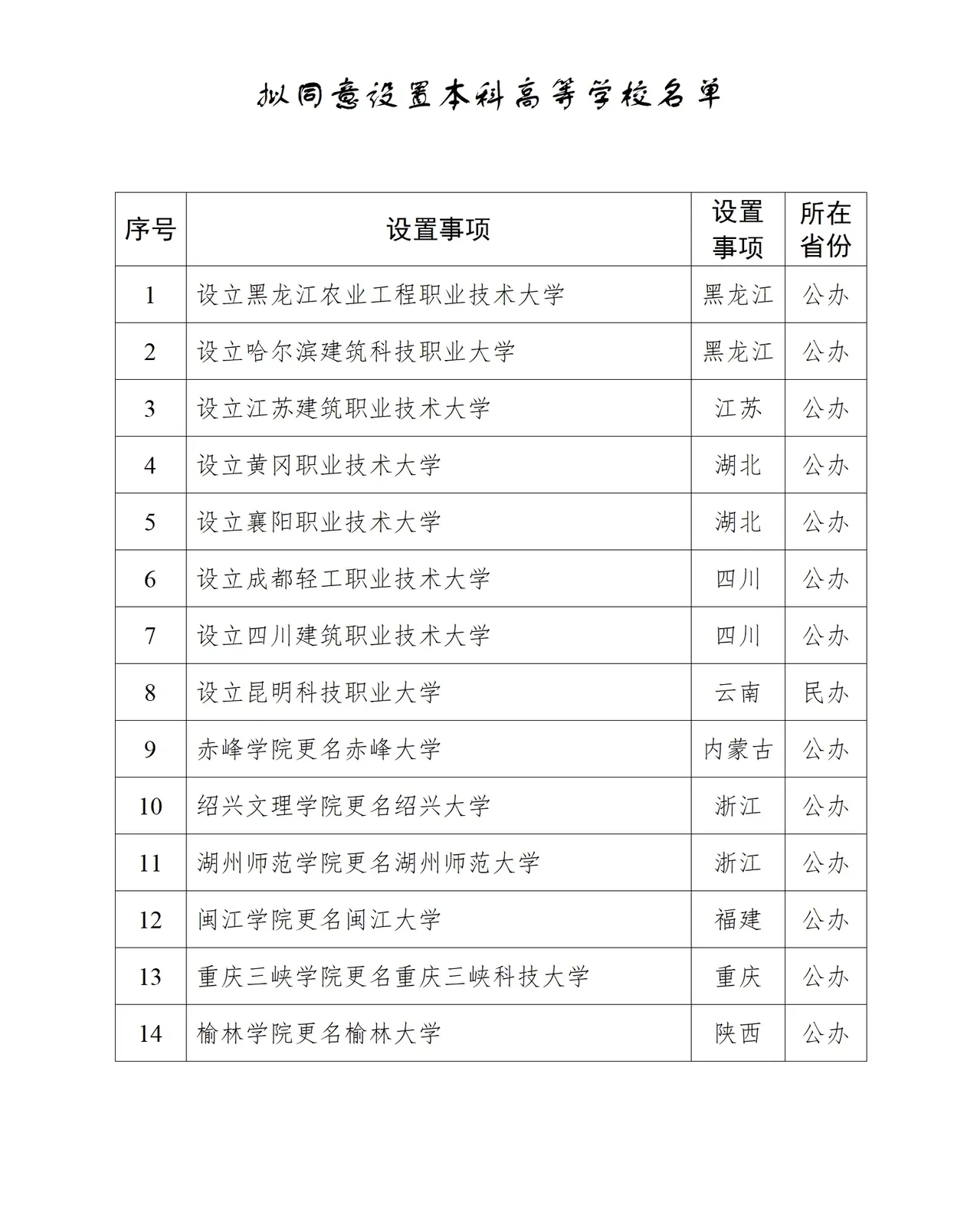 那么除了这几所学院类高校,还有那些已经通过省厅更名公示但还没有获得教育部公示的高校呢: