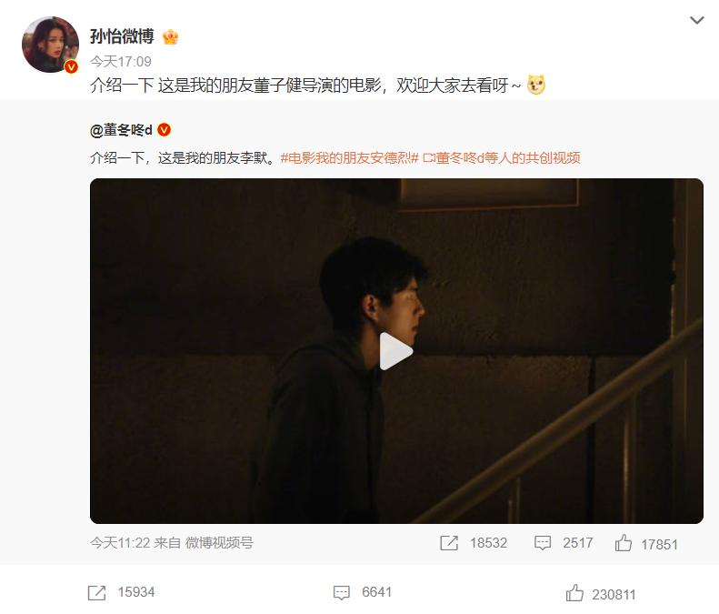 在此之前,董子健有新作品与观众见面,但孙怡都没有帮忙宣传,所以看到孙怡转发董子健的消息,网友们立即开启吃瓜模式,原来《我的朋友安德烈》对董子健来说非常重要,因为这部电影是他执导的。
