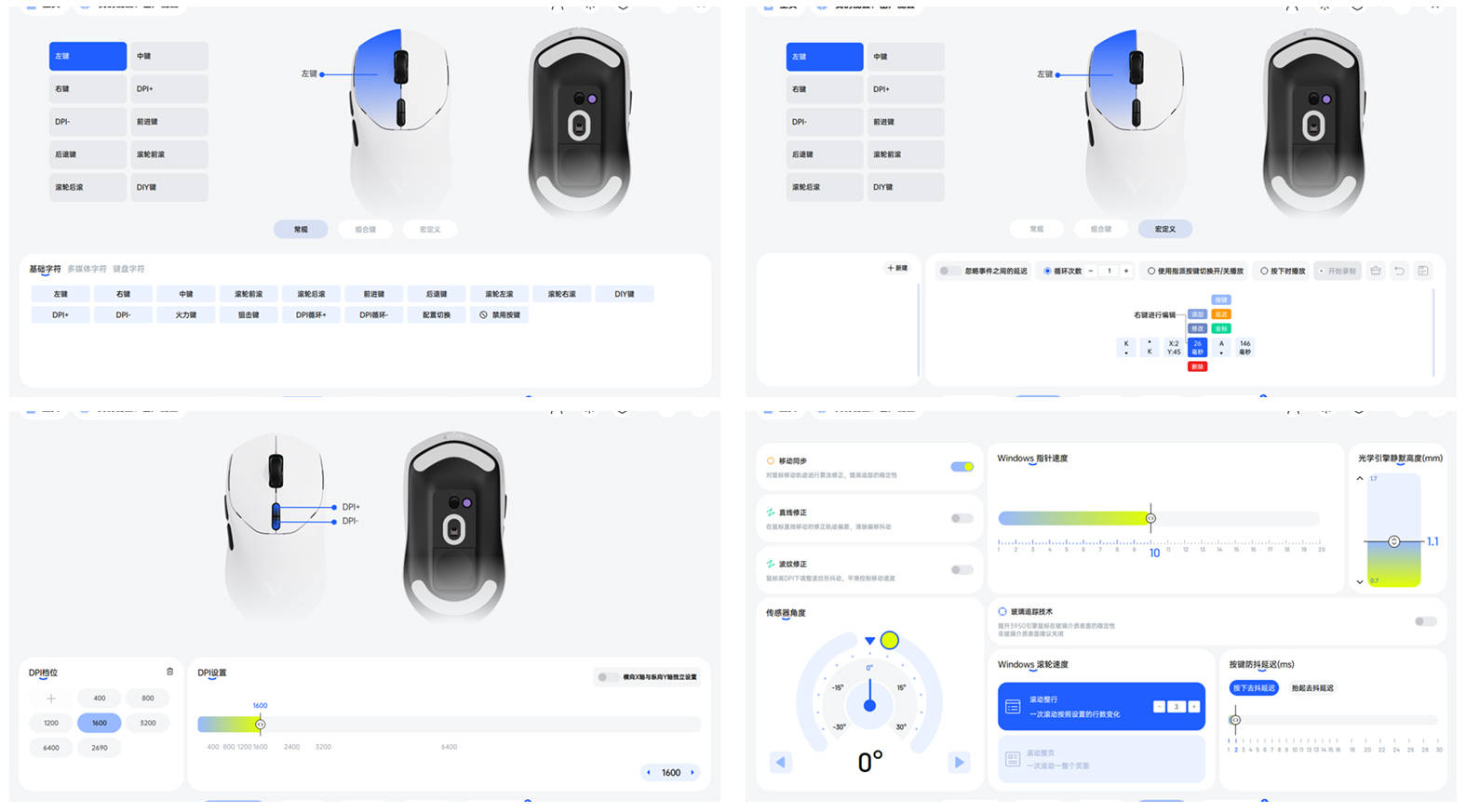 通过雷柏专属的A Hub驱动软件,可以更加方便地对鼠标进行各种设置。板载存储和云存储,配置文件跟随应用自动切换,整合驱动同时兼容Win/macOS双系统并提供配置文件跟随应用切换,DPI、改键、性能、宏定义、波纹修正、传感器角度、防抖、静默高度等,全方位的细节都可以进行设置,还可以根据个人需求在125Hz~8000Hz间任意选择,如狂暴竞技模式、竞技超核模式、超核模式、火力模式、均衡模式、办公模式等。