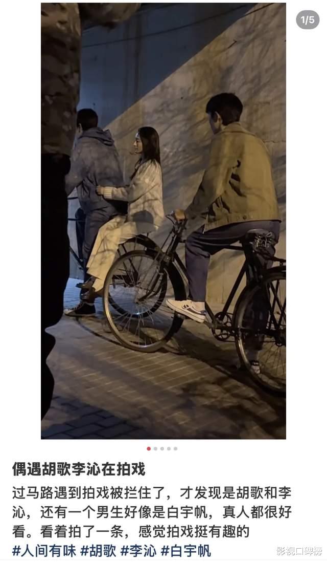 前脚刚刚官宣开机,马上就有网友在北京街头偶遇胡歌和李沁拍新剧《人间有味》。路透照看到胡歌非常潇洒,蹬着自行车后面载着李沁。