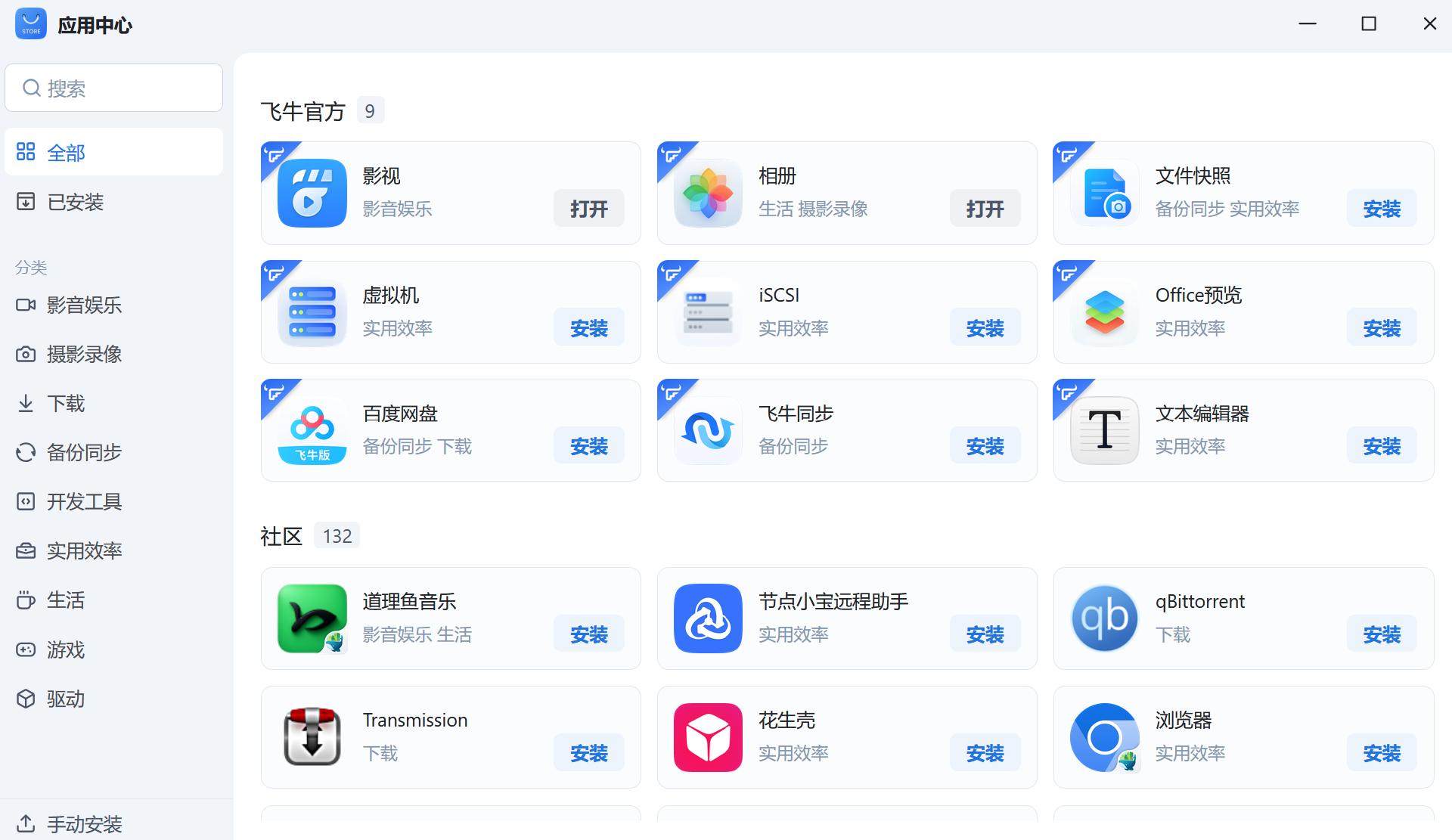 另外,应用中心的应用也已经分类,如影音娱乐、摄影录像、下载、备份同步、开发工具、使用效率、生活、游戏、驱动等,应有尽有,对于普通用户以及极客用户来说都够用了。