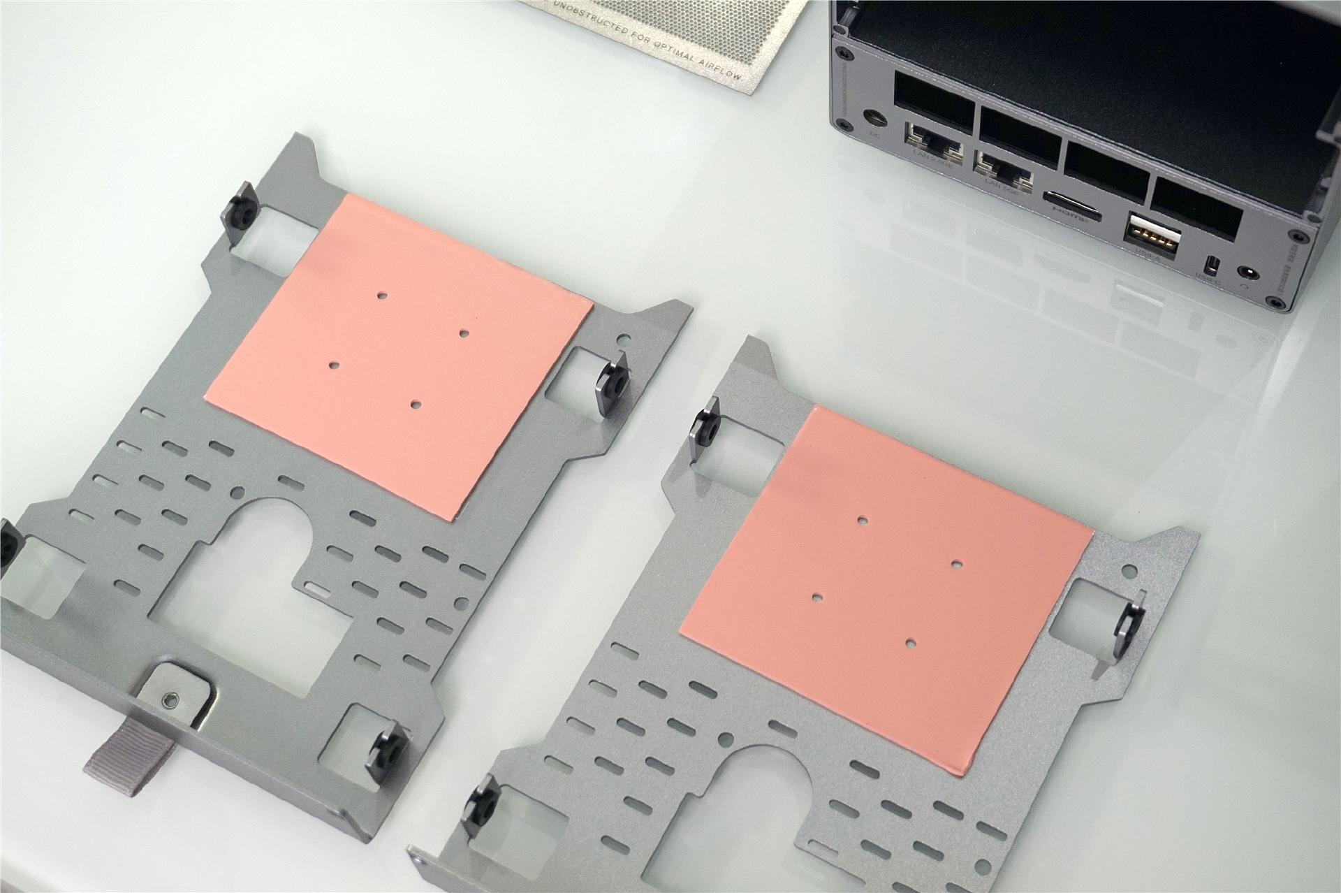 硬盘架采用两颗螺丝固定,这种设计非常务实。毕竟硬盘装好后,基本上就不会去拆装硬盘。用这一点点安装时间,就能换来机身极致的紧凑感,对追求小体积的用户而言,这个取舍做得相当到位。