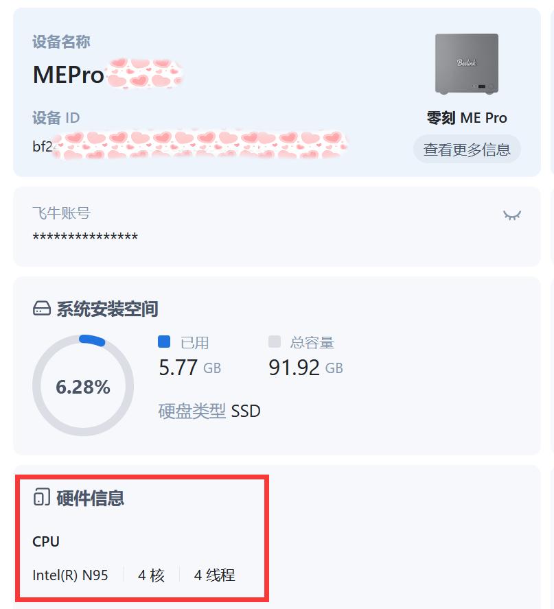 零刻ME Pro有两个版本可以选择,分别是无硬盘无系统版本以及包含飞牛商业版系统版本。我手里的就是飞牛商业版系统版本。