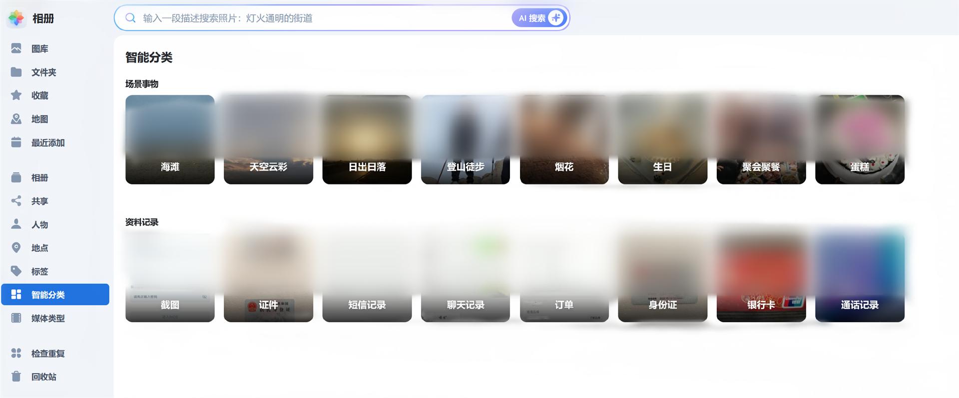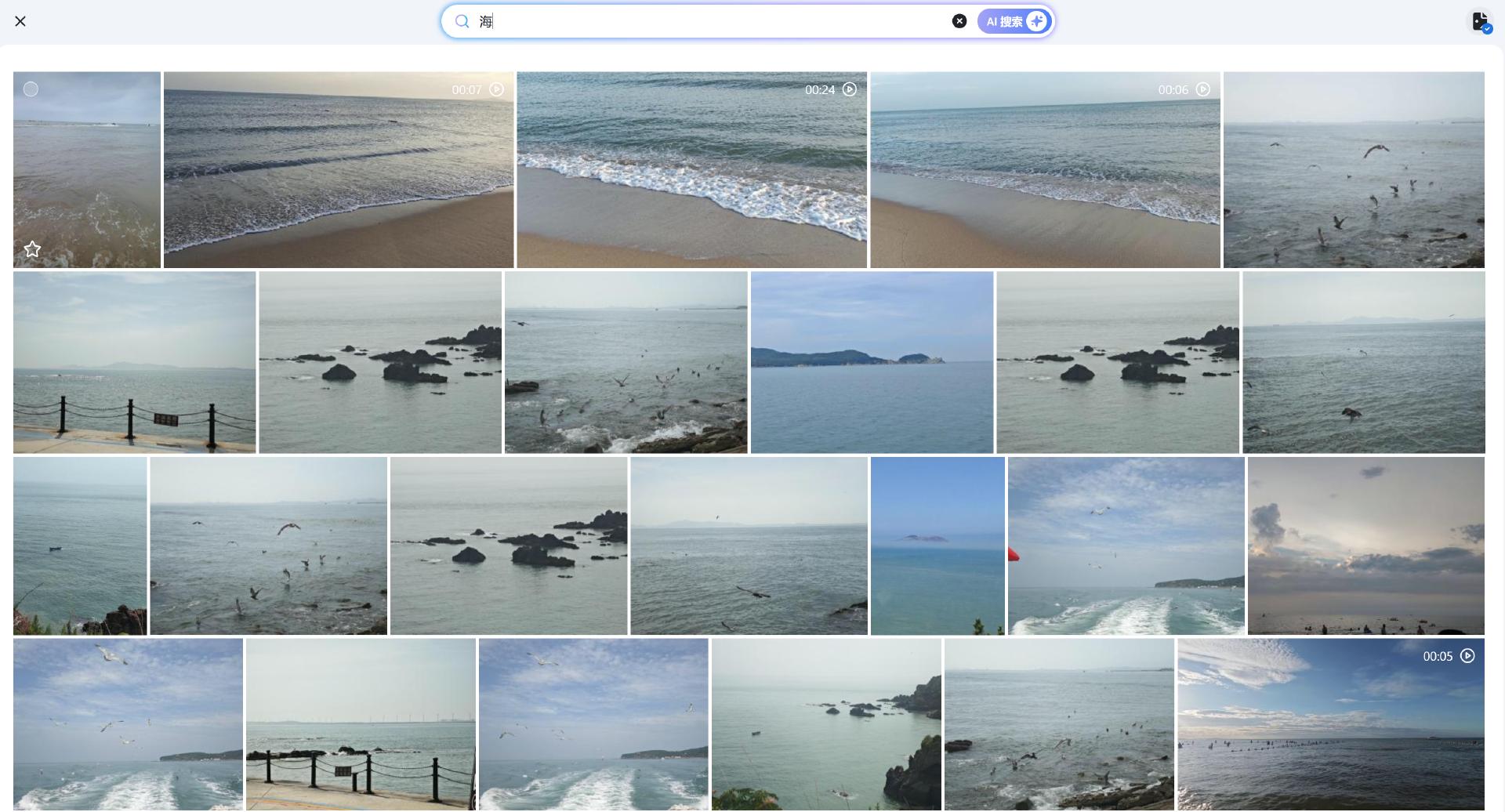 以前找照片得靠脑子回忆“哪年哪月拍的”,现在直接点分类,或者搜个关键词,几秒钟就出来了。比如搜索“海”这个关键词,图库中所有与海相关的照片就都直观呈现出来了。