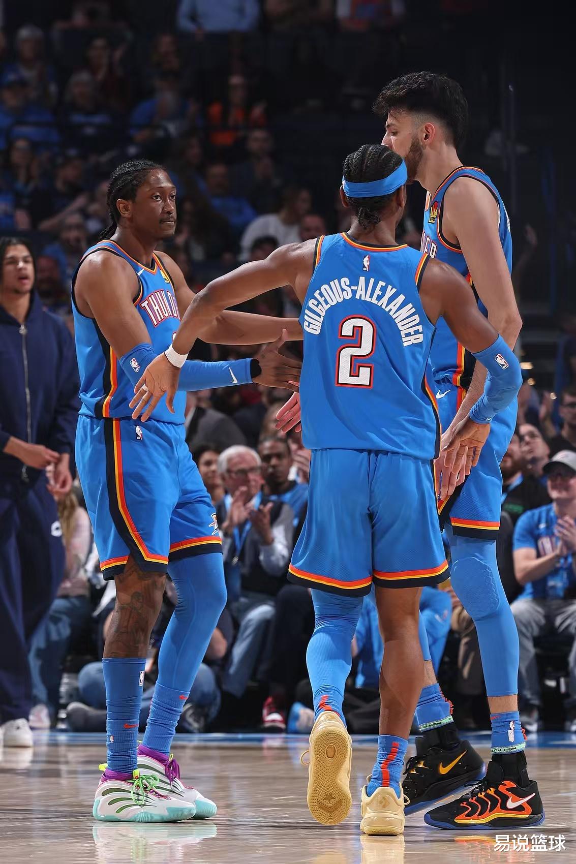 本场比赛亚历山大继续着自己的输出。他全场手感出色,21投13中轰下38分3篮板4助攻,另外杰伦-威廉姆斯本场比赛状态彻底回暖,16中9拿到了22分3篮板6助攻,这对于雷霆赛季后续比赛来说很关键。霍姆格伦也是拿到了21分8篮板的数据。雷霆三巨头都有出色的发挥,最终他们是收获比赛的胜利,继续延续着连胜的势头。