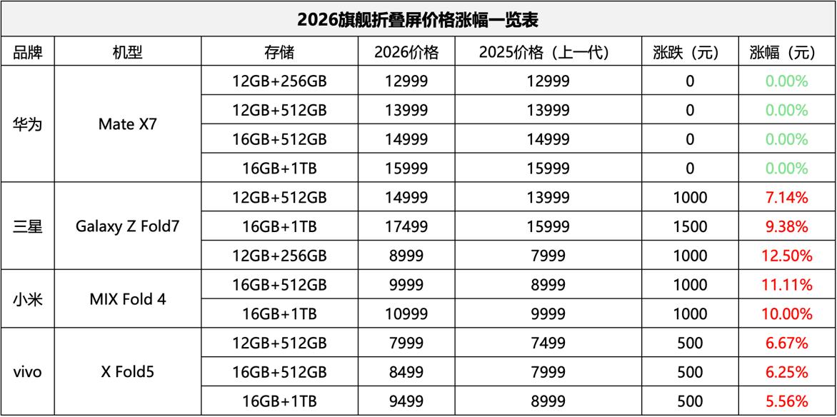 从焕新设计到超可靠折叠玄武架构、第二代红枫影像,再到鸿蒙操作系统 6软硬件协同下的AI大屏体验,华为Mate X7实实在在更好地满足了用户的生活、工作需求,确实非常值得入手。而且当前行业趋势已经很清晰,内存成本居高不下,手机价格只会继续上行,今年即将发布的新机,普遍预测起售价再上台阶。相比之下,产品力拉满、现货充足、不涨价的华为Mate X7等产品,优势一目了然,无疑是涨价潮里“更稳、更香、更保值”的安心选择。