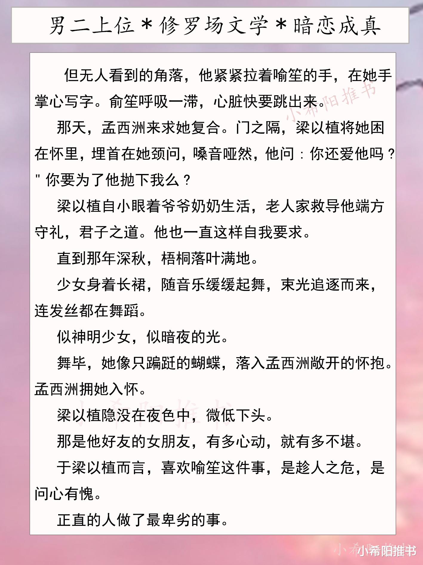 女频作者名下的男二真的很细腻温柔,于梁以植而言,喜欢喻笙这件事,是趁人之危,是问心有愧。正直的人做了最卑劣的事。