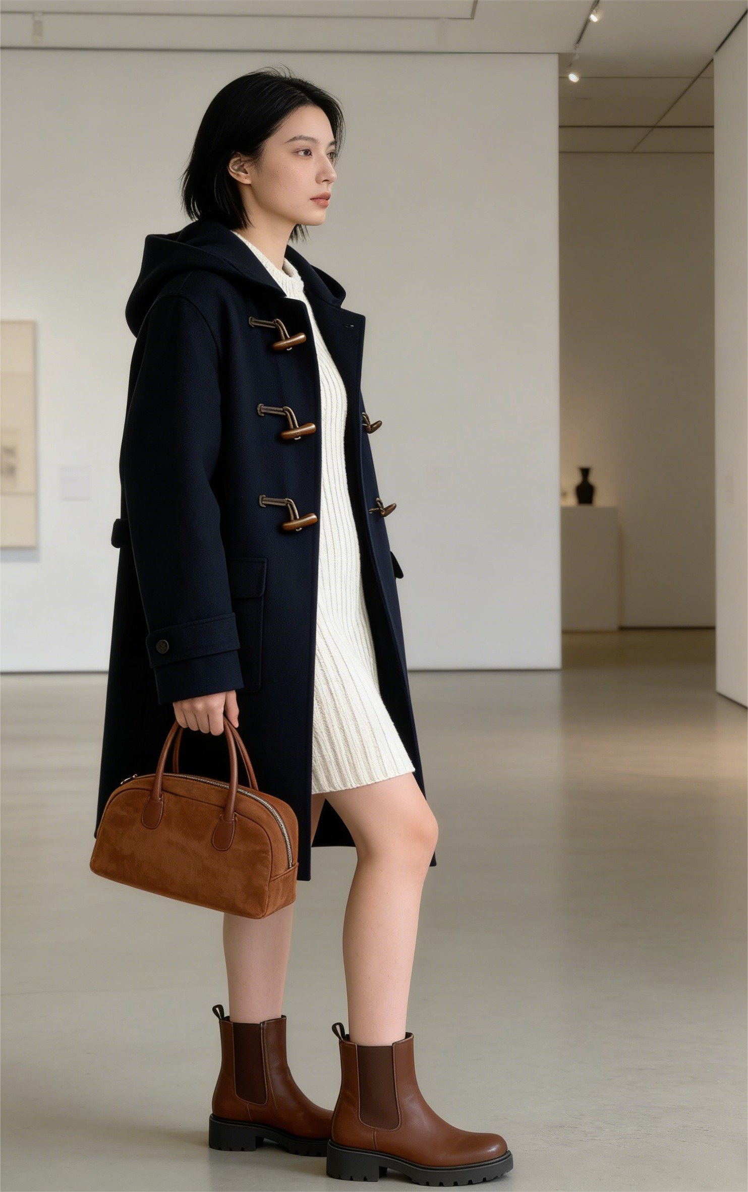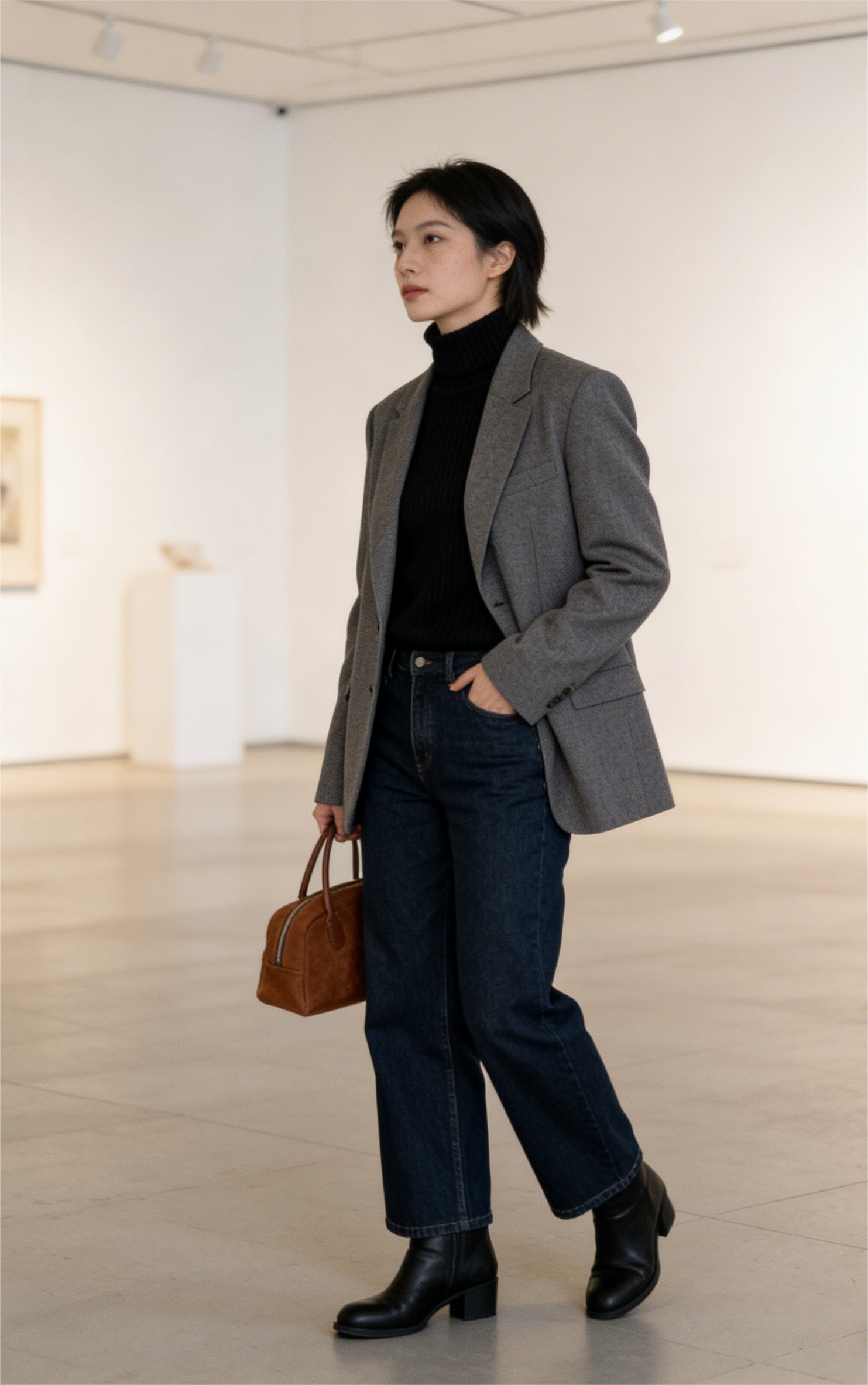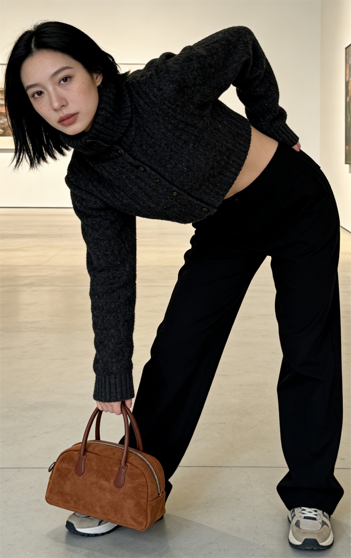 数据表明,这种“上松下松”的廓形,能让视觉重心上移,显高效果比紧身裤提升15%-20%。适合通勤、看展、过年走亲访友,都不过时。