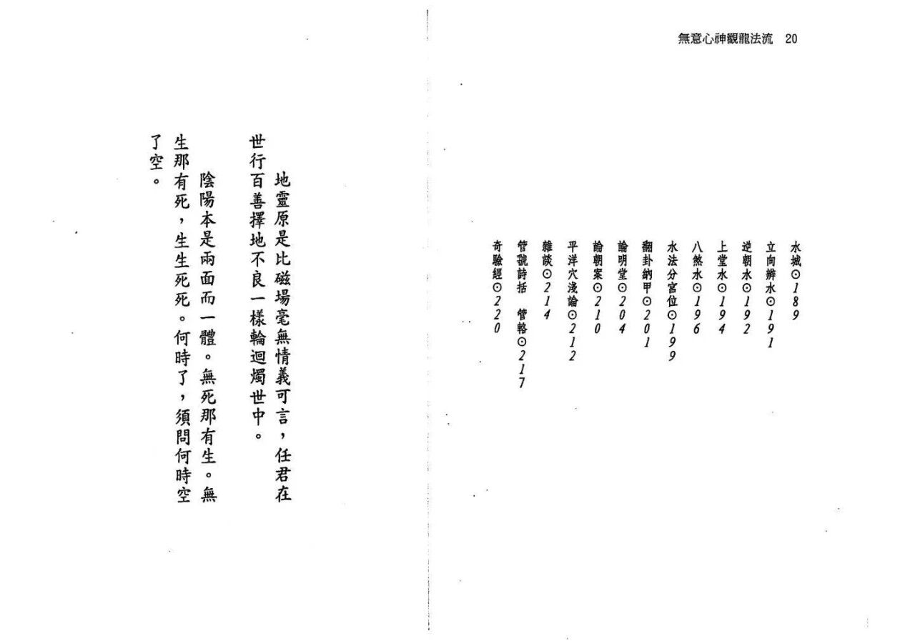 全书240页两册,干货满满、字字珠玑,以“戴仁无意心神观龙真传为核心、实操落地为载体”,构建起“心法修炼—观龙技法—实操指引—禁忌说明”的完整体系,每一项心法、每一个技巧均源自戴仁亲著,贴合“无意观照、辨龙识气、趋吉避凶”的核心逻辑,真正实现“看得懂、学得会、用得上、值得藏”。书中亮点纷呈,全品类覆盖无死角:详解无意心神核心心法,传授澄心定志、收视返听的内观技巧,摒弃杂念、抱元守一,以无心之态感应龙气,契合“涤除玄鉴、能无疵乎”的内观要义,打破传统观龙的思维局限;系统讲解观龙实操技法,结合形峦格龙、水法格龙精髓,传授直、横、回、飞、潜五种龙脉格局的辨别技巧,适配山地、平原等不同地形,精准捕捉龙气轨迹;深入拆解气脉追踪与龙穴判断,揭秘真龙结穴的“藏风聚气”特征,详解穴晕辨认、吉凶判断的实操方法,搭配实战案例印证,让抽象的观龙学问变得可学可用;补充观龙禁忌、内观修炼要点、罗盘辅助应用等干货,完善无意心神观龙体系,全方位满足寻龙、观龙、点穴等风水需求。