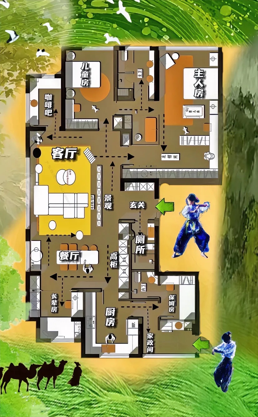 很好奇,它的平面,是一体化规划,布局却是三代同堂,动线升华!
