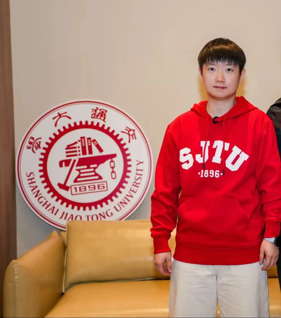 孙颖莎现身上海交通大学,穿着交大红色服装。孙颖莎本科毕业于上海交通大学安泰经济与管理学院,本科期间孙颖莎和王曼昱是同学,