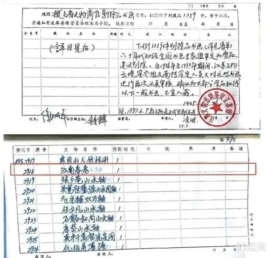 事件曝光后,南京博物院于12月17日晚发布情况说明,提供了关于此画流向的官方说法。上世纪六十年代,经过两次鉴定,均认定该画为赝品。1997年5月8日,被认定为赝品的《江南春》图卷拨交给原江苏省文物总店。2001年4月16日,这幅画被一位署名为“顾客”的买家以6800元价格购得。