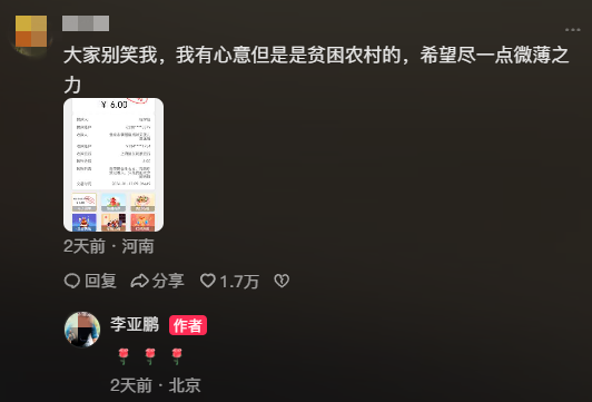 一觉醒来,全网都在排队给李亚鹏道歉、捐款,捐的钱甚至超过了1600万元。