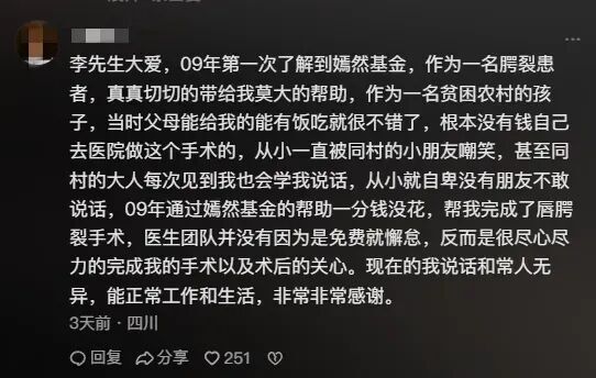 有网友说,自己或者身边的孩子,多亏了嫣然天使基金,才能免费做上手术。