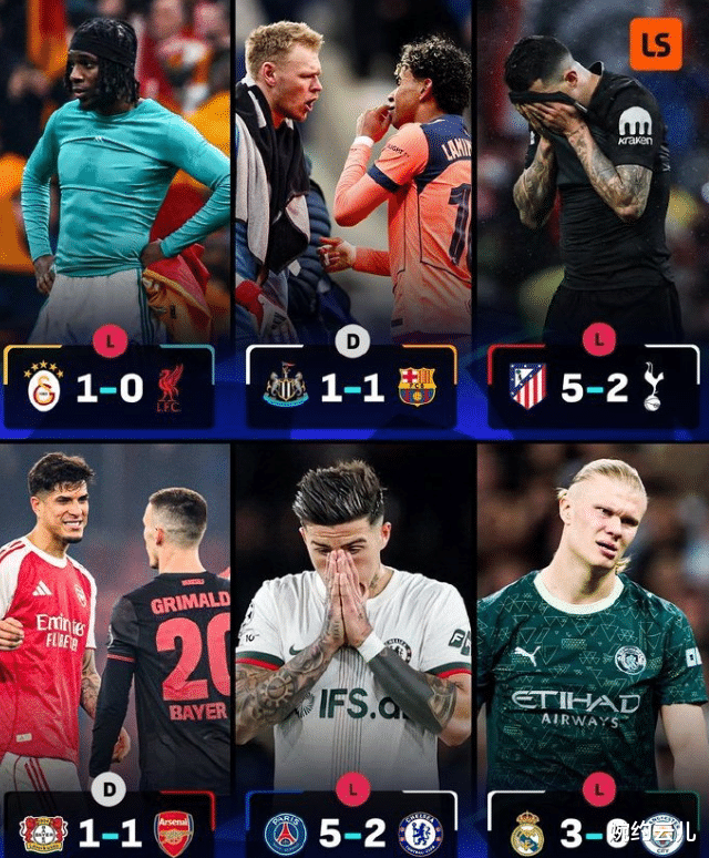 欧冠1/8决赛首回合战罢,英超六强的表现都堪忧,率先出战的利物浦客场0比1不敌加拉塔萨雷被认为够冷,但是只丢一球还有次回合主场翻盘的机会。纽卡主场1比1逼平巴萨很有针对性,次回合也有晋级机会。阿森纳客场1比1勒沃库森同样有点冷,作为英超榜首队被对手逼平的确丢人。曼城客场0比3皇马太令人失望,回到主场也难逆转,热刺客场2比5不敌马竞,切尔西客场2比5不敌巴黎圣日耳曼的确更惨,蓝军新帅欧冠赛场经验的缺失让球队在首回合丢了太多球,次回合主场作战也难逆转晋级,只能期待蓝军再度制造奇迹。